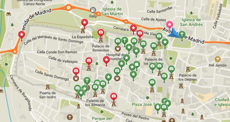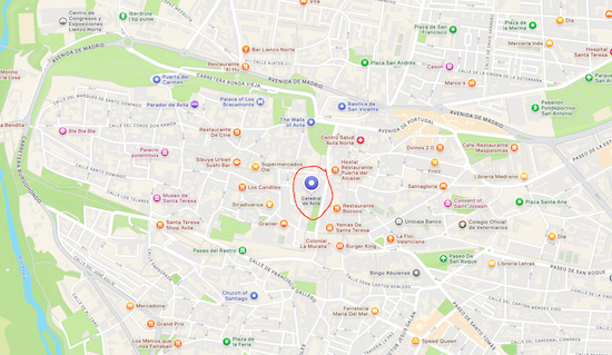 Walled around the perimeter of 2516m with 87 semi circular towers with average thickness of 3m and with access via 9 gates into the city – said to date back to 1090 and most of it rebuilt in 12th cAVILA CITY MAP