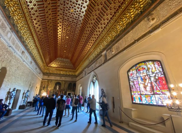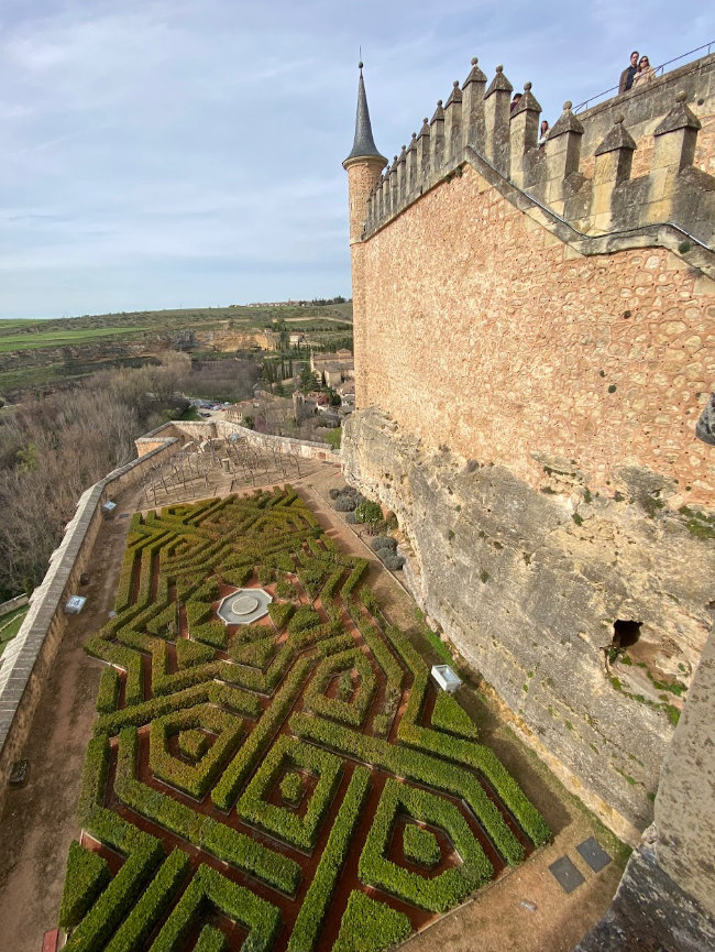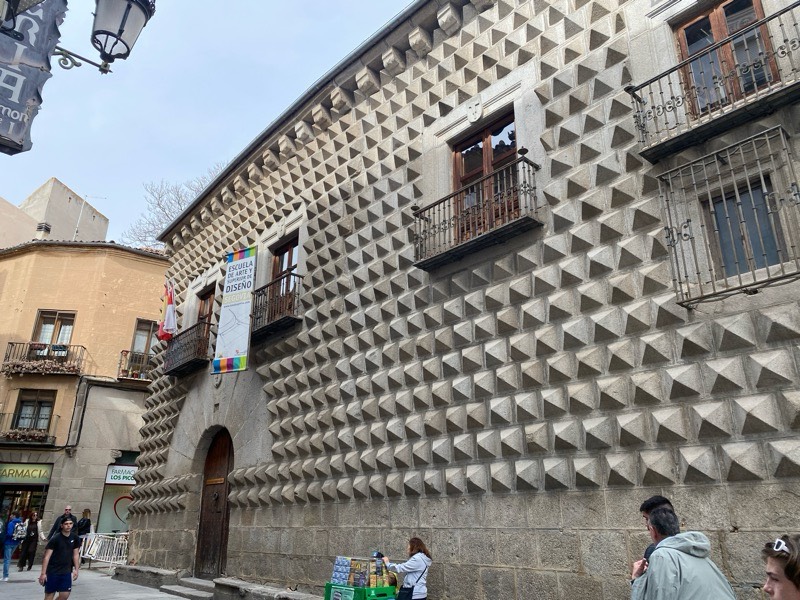 Sergovia Alcazar is the most important castle in the country! The castle is built like the bow of a ship over the edge of a rock promontory – its a rather unique castle that ive exploredMy favourite part was the “bow” of the castle which overlooks the valley and as you look down you see a sculpted garden with a fountain in the middle – feels like youre in a movie!Its architecture is a blend of Gothic and Mudéjar styles – gold ceilings in intricate Mudejar architectureOne of the bedrooms in the castleThe surrounding landscape is beautiful with a small town just outside the walls, all built in similar architecture and colours – would love to go down there and explore one day!Look at the unique artwork and detailed modelling on the walls The ancient walls that encircle Segovia’s historic center date back to the 11th century, serving as a fortress to protect the city. Stretching over 3 kilometers, these walls are punctuated by gates and towers, offering a glimpse into the medieval defenses that once made Segovia a formidable stronghold. Walking along these walls provides a unique perspective of the city and its history.The church inside the Cathedralinside the CathedralPlaza Medina del Campo Sergovia School of Art & design – This building is so cool! famous for its unique facade of 617 granite pyramid shaped blocks making our way up to Sergovia old town – I couldn’t wait to explore