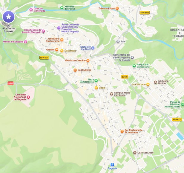 SEGOVIA CITY MAPThe view over the mountains is beautiful from the old town overlooking the Spanish buildings below