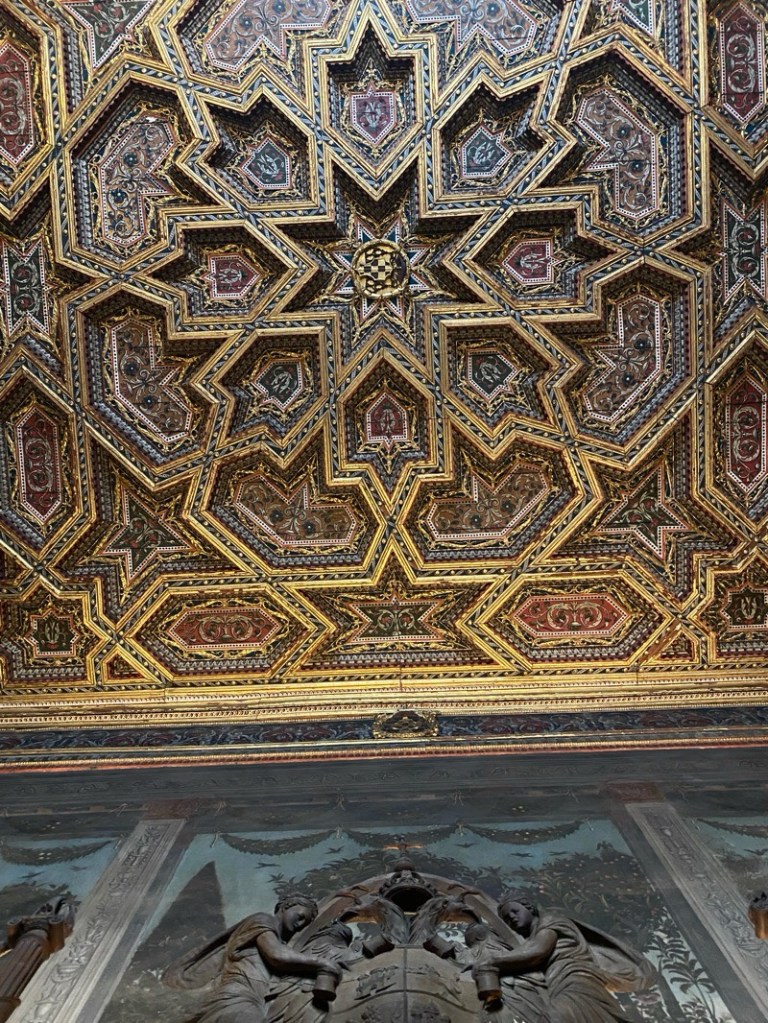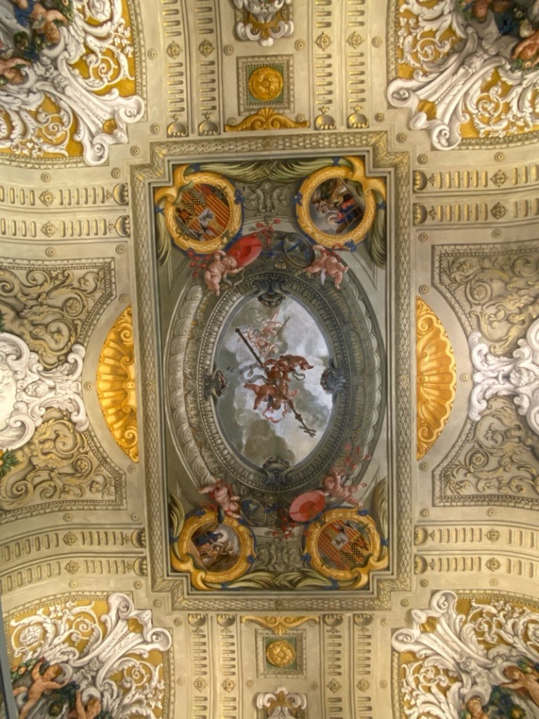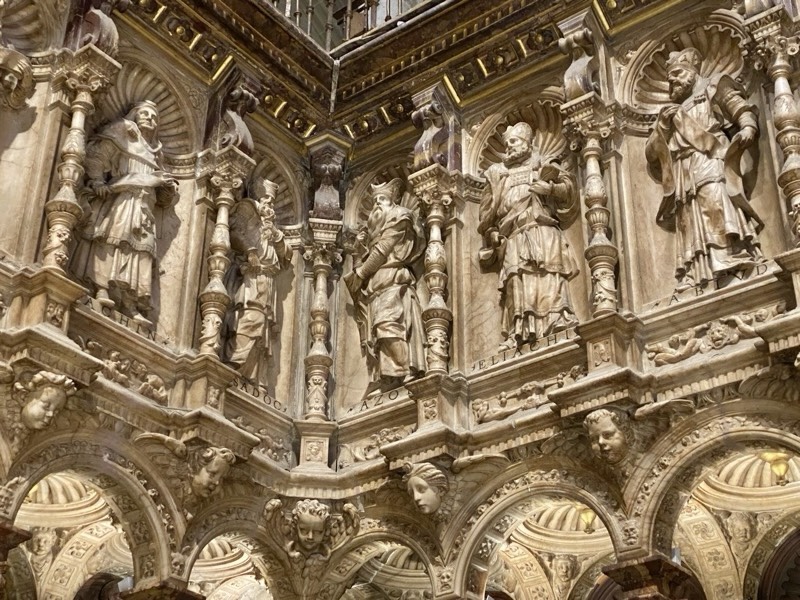 I couldn’t get over it! There are 120 seats and each seat had a different artwork and story to it depicting the reconquest of the Battle of Granada by the Catholic Monarchs – each seat has individual arm rests and seat detailing was different from the next