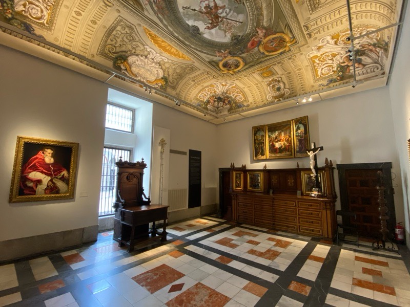 The ceiling is covered by murals painted by Jose Donoso and Claudio Coello in 17th. c