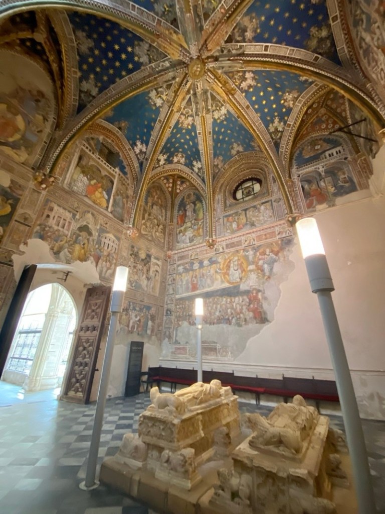 Created as a burial place for the Archbishop – It’s an octopartite ribbed vault ceilings painted in rich painting of a starry sky and dragons and symbols of protection and scenes of life of Christ and saints