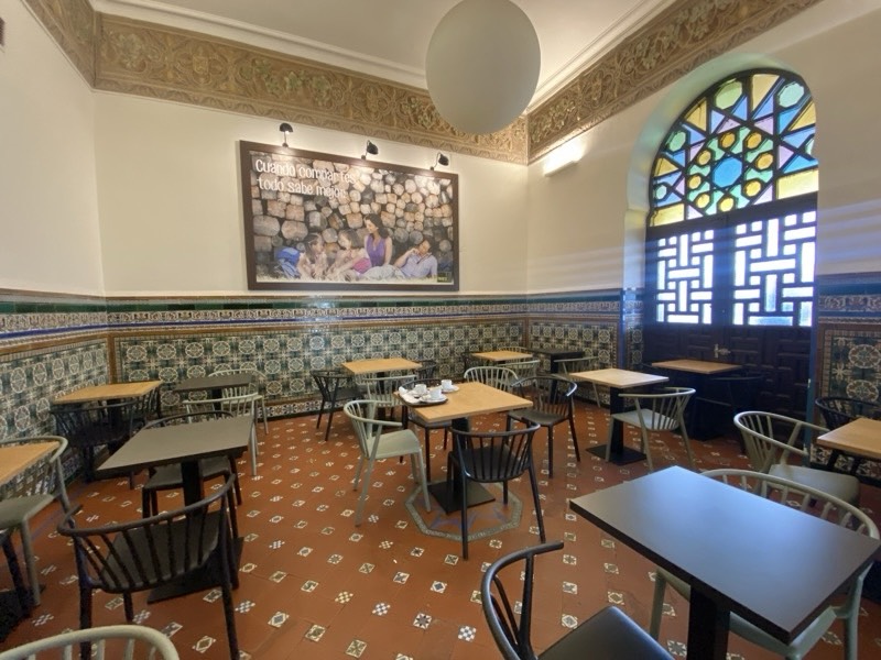 The materials used in this singular station were brick and stone, as well as iron and cement; the whole construction of plasterwork & woodwork – tiles from the Casa Mensaque in Seville