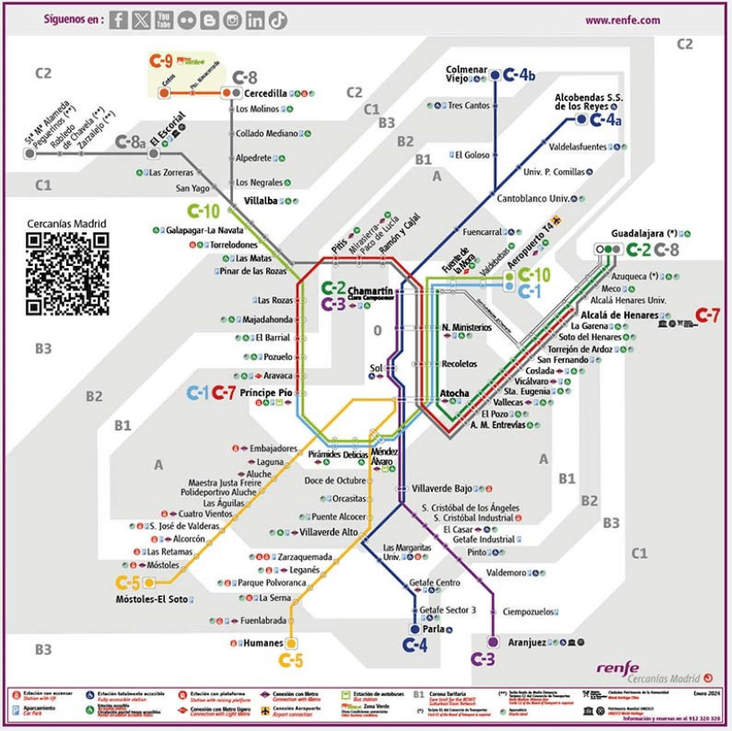 This is the local Madrid suburban train system – goes across the city and connects main stations with surrounding towns – Great for planning day trips from Madrid