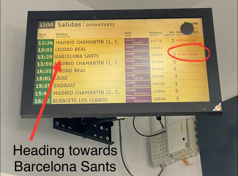 I left the Hostal around 12:20pm and grabbed a takeaway coffee with leiche de soja which was nice and hot and I enjoyed it sitting outside the train station with the sun in my face peaking through the overcast day