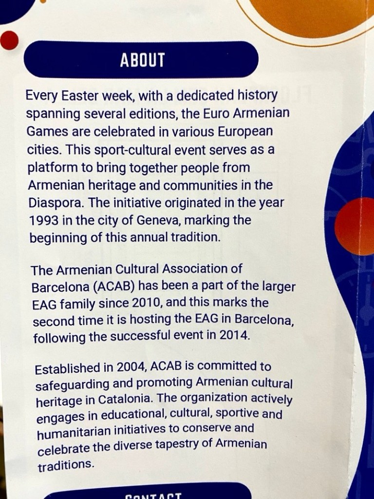The European Armenian Easter games are held once a year and hosted by different european cities – we also have a similar version held in Australia but on a much smaller scale called the Navasartian Games, on at Christmas time