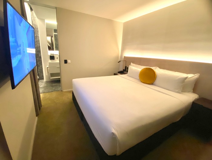 As you enter the curtains automatically open and light streams in from the windows – pretty cool design!
