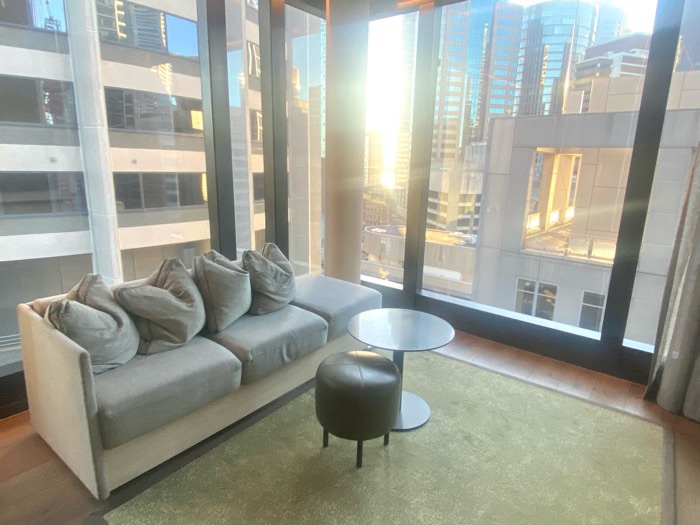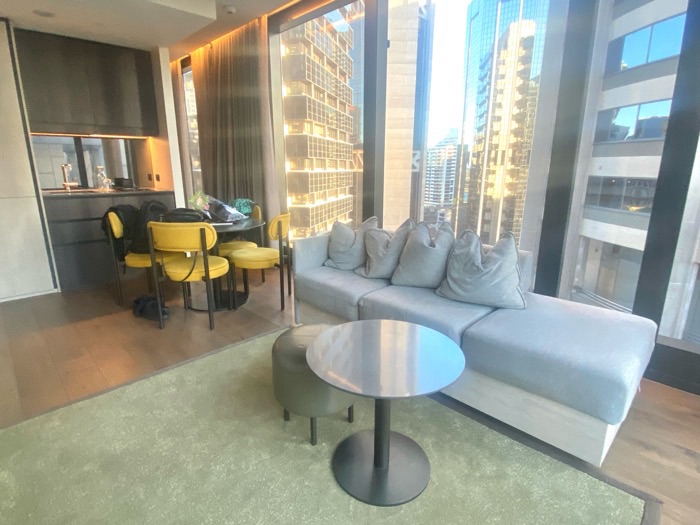 A for Adina was a real luxury hotel apartment stay and walking in from the entry on Hunter St its a modern and luxurious feel as you enter 1 of 3 lifts that zoom you up to reception on the 21st floor