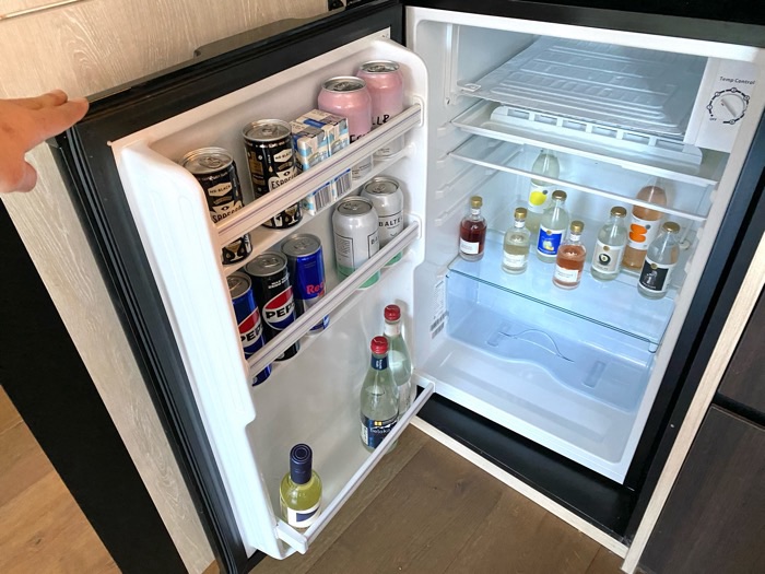Mini fridge in the kitchen area