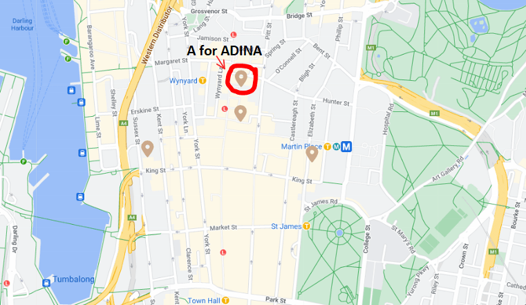 A for Adina hotel on Hunter Street – view walking from Wynyard Train Station