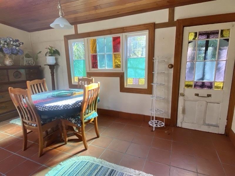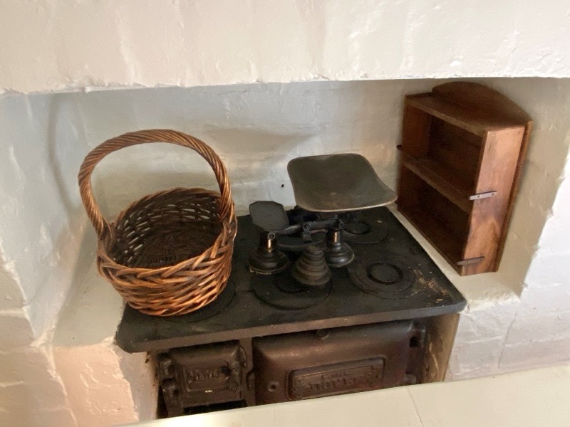 The cute old school kitchen! Had its old fireplace and stove on the left still (not in use though) but had many of its old features still in tact