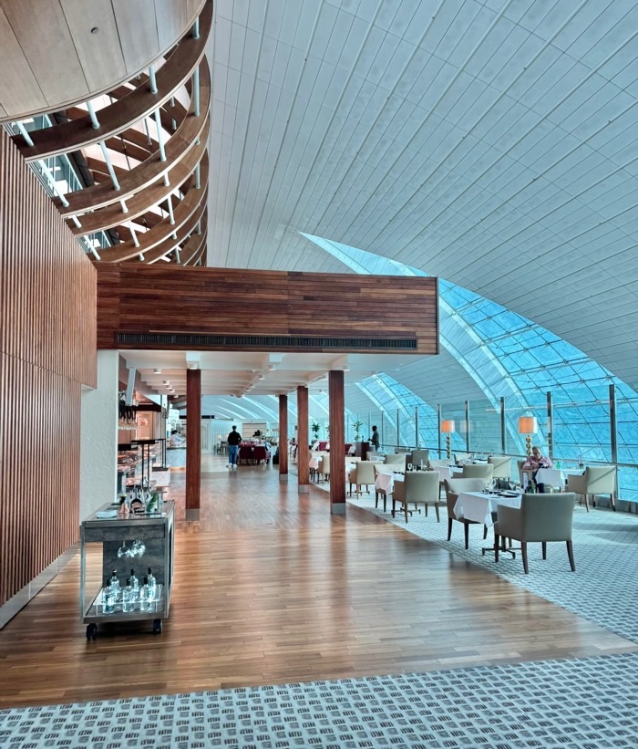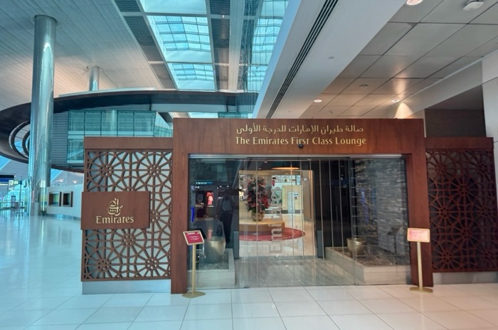 You get access to the Emirates lounge which is included in your 1st class ticket (you’d hope so!)
