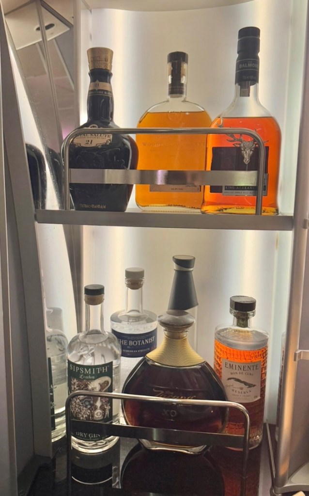 The chocolate selection! Have as much as you want 🤣Snacks and a tea break!The top notch spirits selection The toilet and shower area, you can camp on the floor 😂The rather large shower, which is basically the size of the whole toilet in economy!Heading to Sydney flying from the south rather than over australia from PerthThe other shared bar where you can get any cocktail you wantThe bar area