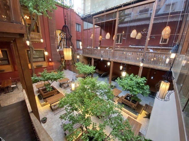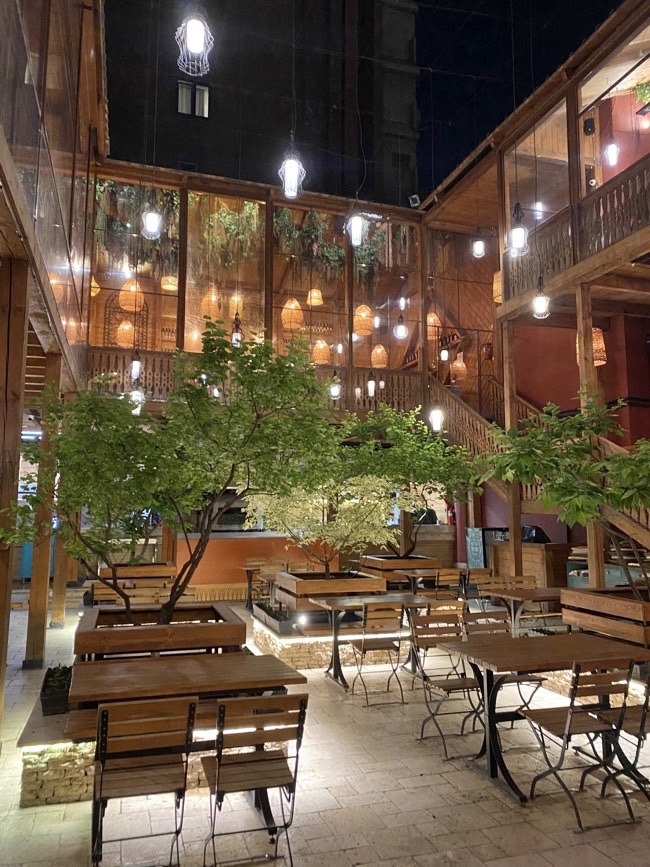 The spacious courtyard behind the building has turned into an authentic place in the center of the capital, with trees, a tandoor, restored wooden antique balconies and benches in the Armenian style, where you can spend pleasant evenings enjoying the atmosphere of the old city and traditional Armenian dishes