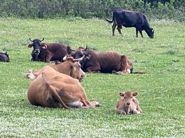 The comfy and cute cabins that we stayed in facing the paddocks where the cows chickens and ducks roam freely
