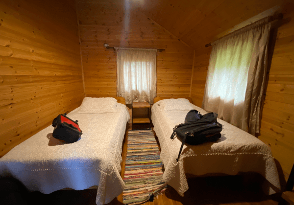 The twin room in the double roomed cabin – nice and warm and comfy beds with lovely covers and sheets