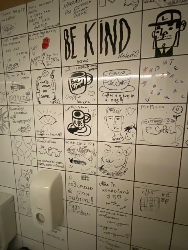 The random graffiti in the toilets and over the walls of the cafe, you can add to it