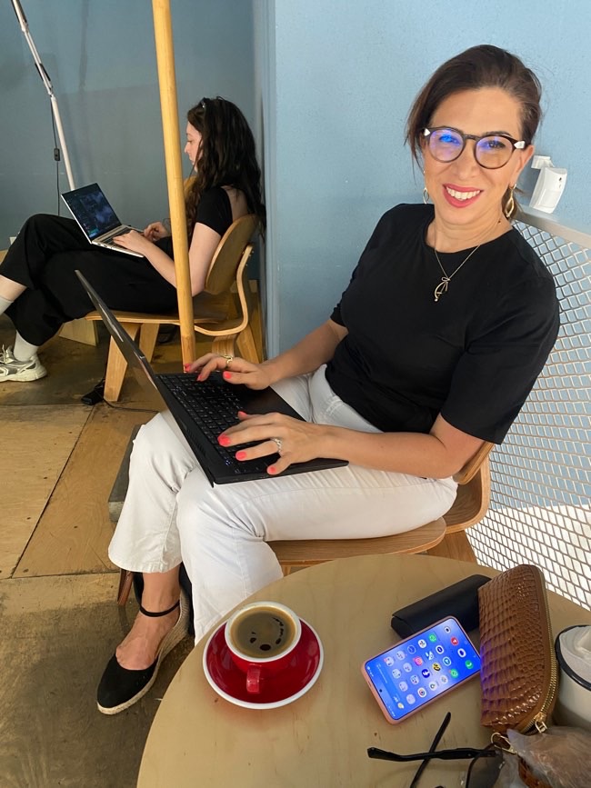 The seating is limited and there are a few high stools and tall bench but other than that there are small lounge like chairs and short tables so you might have to have your laptop on your… lap! literally lol