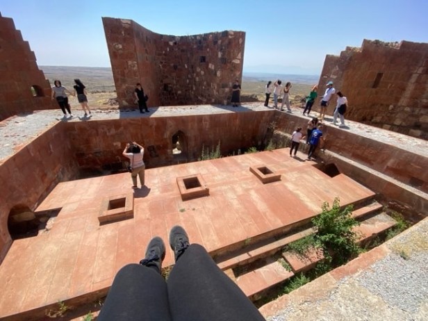 The keep consists of 4 semi circular towers (12th c?) they sit atop of older 10th c. Armenian fortifications