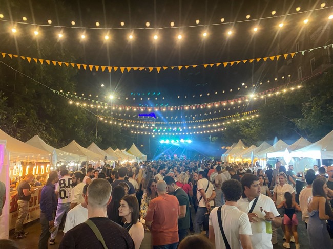When the festival finished we wandered around with our beer mugs and drank while walking around the city and sat down on one of the famous YEREVAN benches and chatted until late!