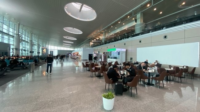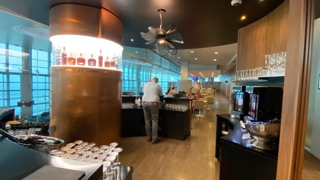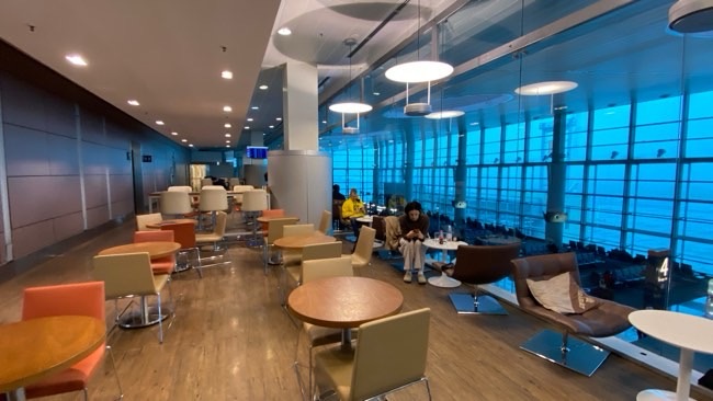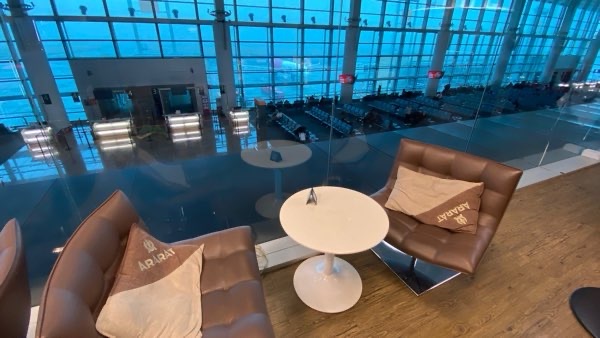 The lounge is located on the top floor of the international airport overlooking the boarding gates